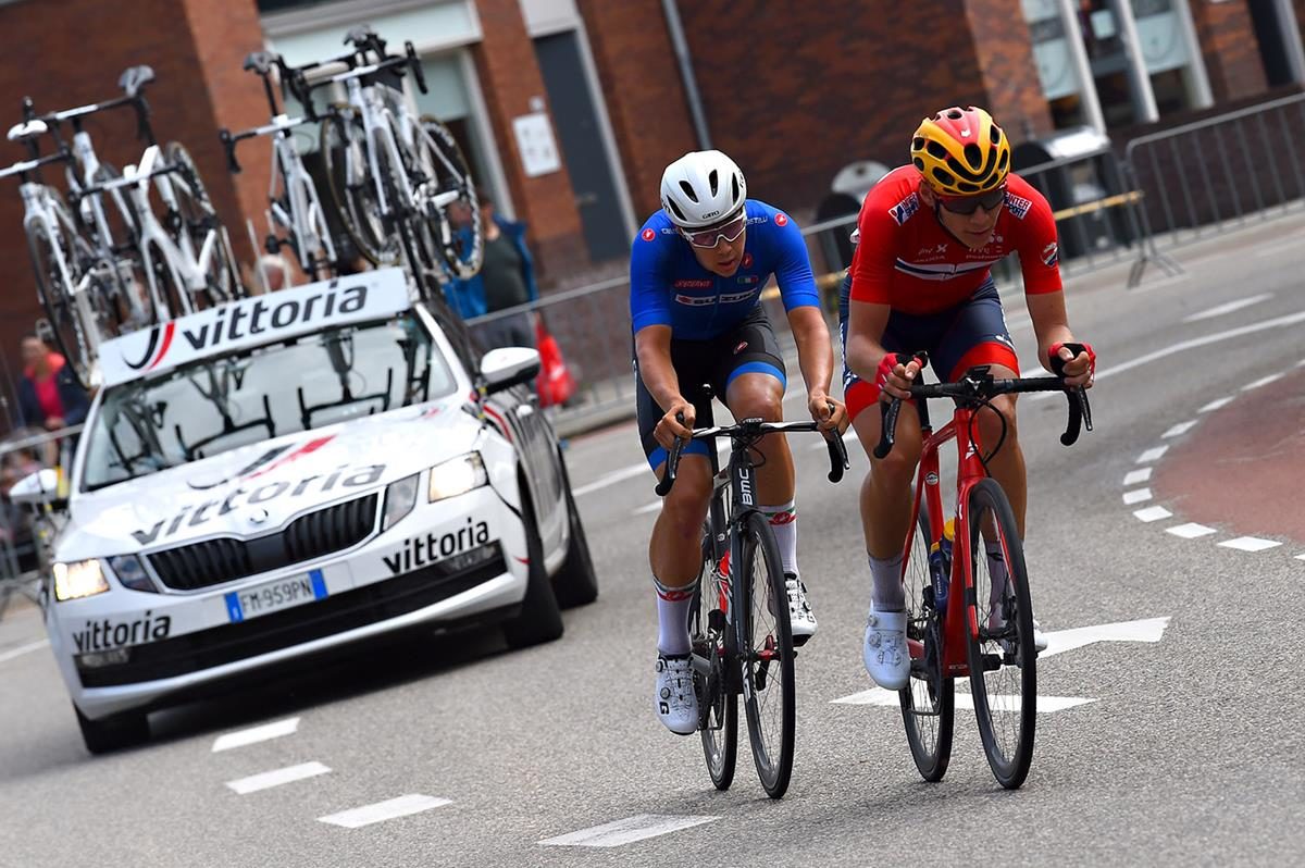Gara vivace ed emozionante ed Italia protagonista fin dall’inizio. A tenere banco è stata una fuga a due che davvero per poco non è riuscita ad andare in porto. La Nazionale diretta dal CT Marino Amadori ha mandato all’attacco il coriaceo Alexander Konychev, figlio d’arte, in compagnia del norvegese Jonas Iversby Hvideberg. I due sono andati via di comune accordo e hanno guadagnato un bel margine di vantaggio.