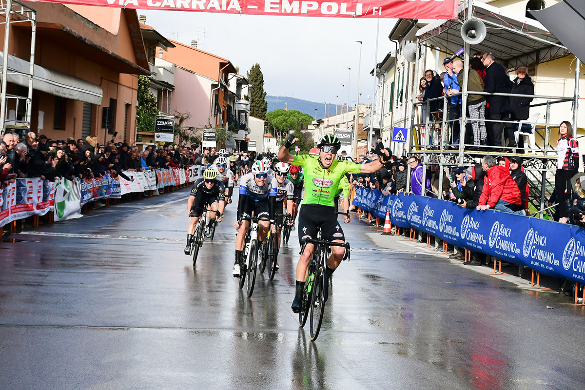 EMPOLI (FI) – Si è aperta nel segno dei corridori friulani la stagione degli Elite e Under 23: a Bryan Olivo, vincitore della 100° Coppa San Geo, si è aggiunto Alessio Menghini (General Store-Essegibi-F.lli Curia), che ha fatto sua la 37° edizione della Firenze-Empoli. Al debutto in maglia giallo-nero-verde, il passista veloce di Udine ha avuto la meglio su Matteo Baseggio della Uc Trevigiani Energiapure Marchiol e Tommaso Dati, portacolori del Biesse Carrera (nell’immagine Photors.it, l’esultanza di Menghini).