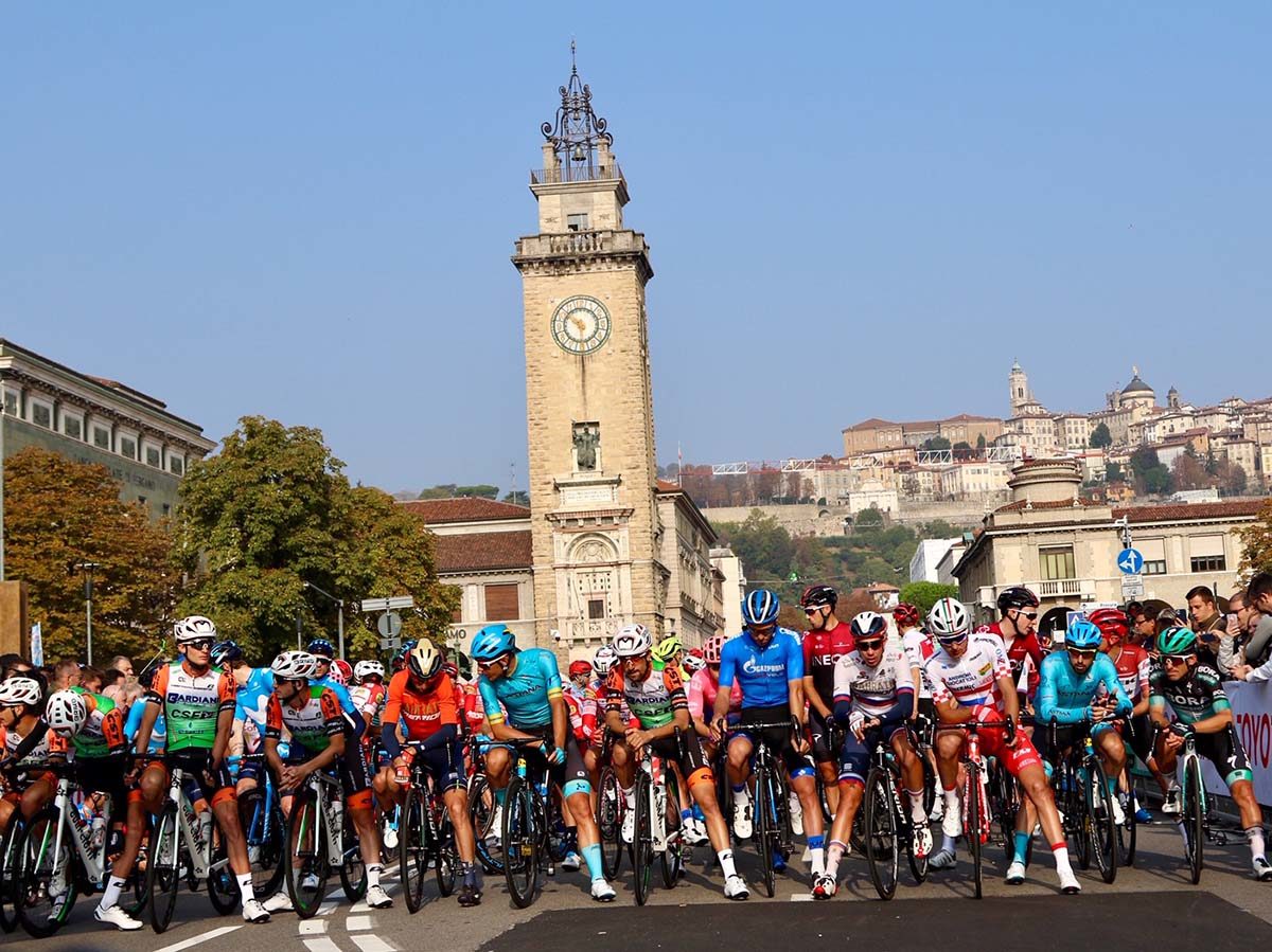 La partenza da Bergamo de Il Lombardia 2019 (foto Photobicicailotto)
