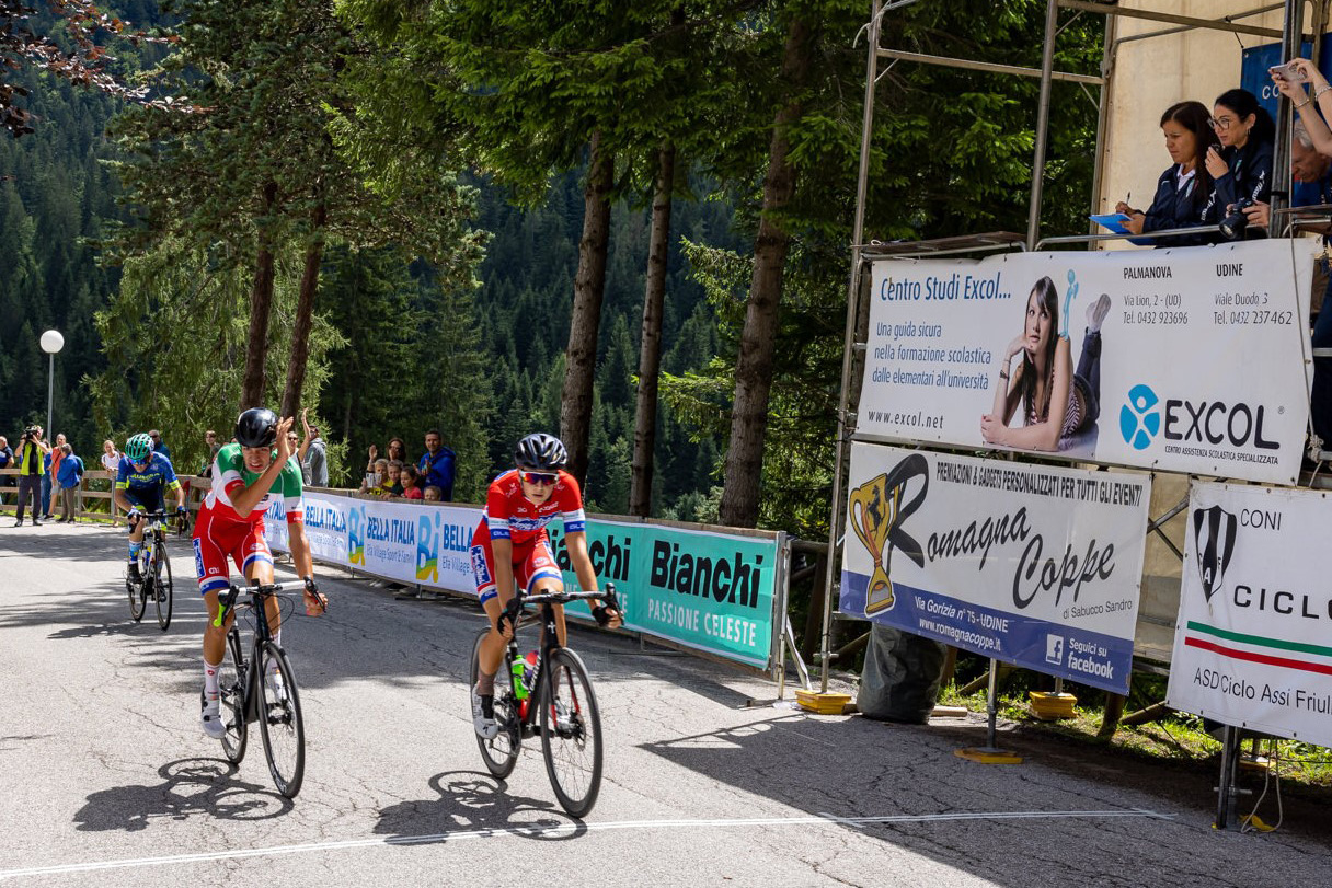 PEONI DI TRASAGHIS (UD) – Trentini corsari a Peonis di Trasaghis, sede della seconda edizione del Gran Premio Val Degano in Carnia: a vincere è stato il primo anno Brandon Fedrizzi (CC Forti e Veloci), al terzo successo stagionale, che ha preceduto il compagno di squadra e campione italiano Edoardo Caresia; terza piazza per un altro trentino: Christian Vedovelli, portacolori dell’Aurora Trento (nella foto di Solero Sappada, l’arrivo).