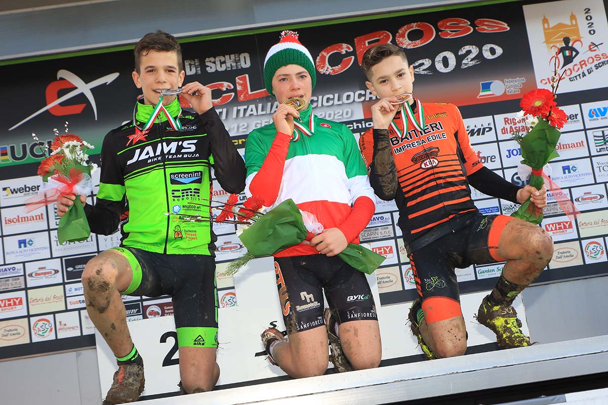 Il podio del Campionato Italiano di Ciclocross Esordienti 1° anno vinto da Riccardo Da Rios (foto Fabiano Ghilardi)