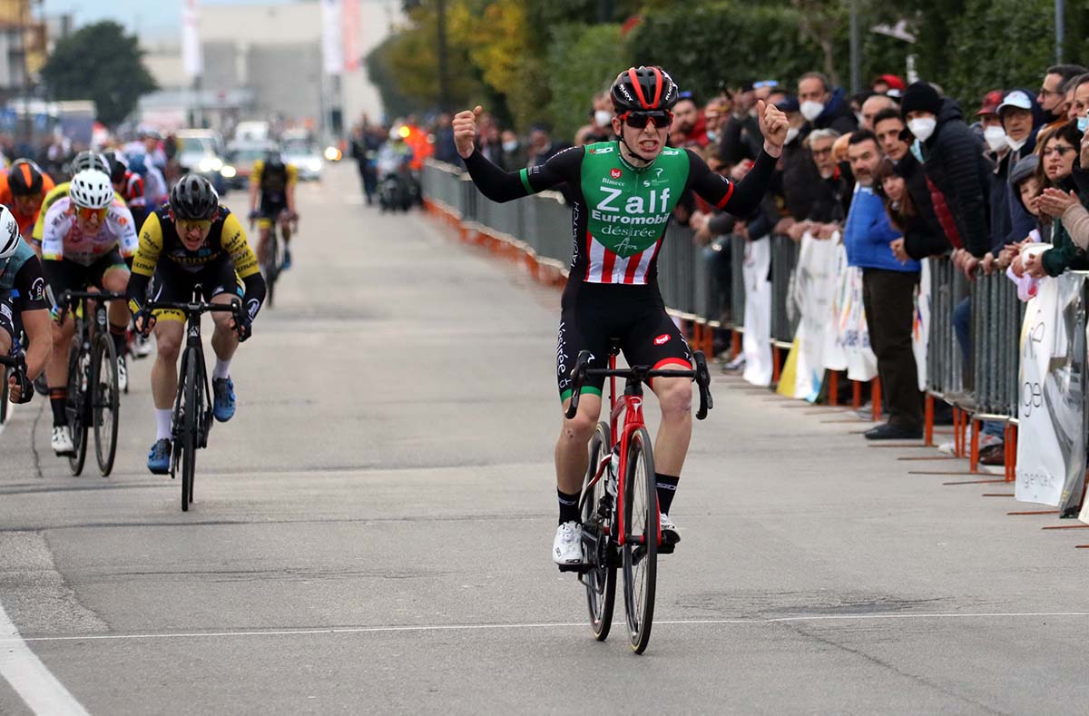 Il Campione Italiano del Ciclocross tra gli juniores si è imposto nello sprint a ranghi ridotti che ha deciso l’impegnativa gara toscana. Il vicentino di Piovene Rocchette, classe 2002, ha sfruttato al meglio il forcing del compagno di colori Federico Guzzo, andato in avanscoperta negli ultimi 25 chilometri e ripreso solo in vista del triangolo rosso. Da quel momento sono iniziate le operazioni in vista della volata decisiva che ha visto prevalere nettamente Davide De Pretto.