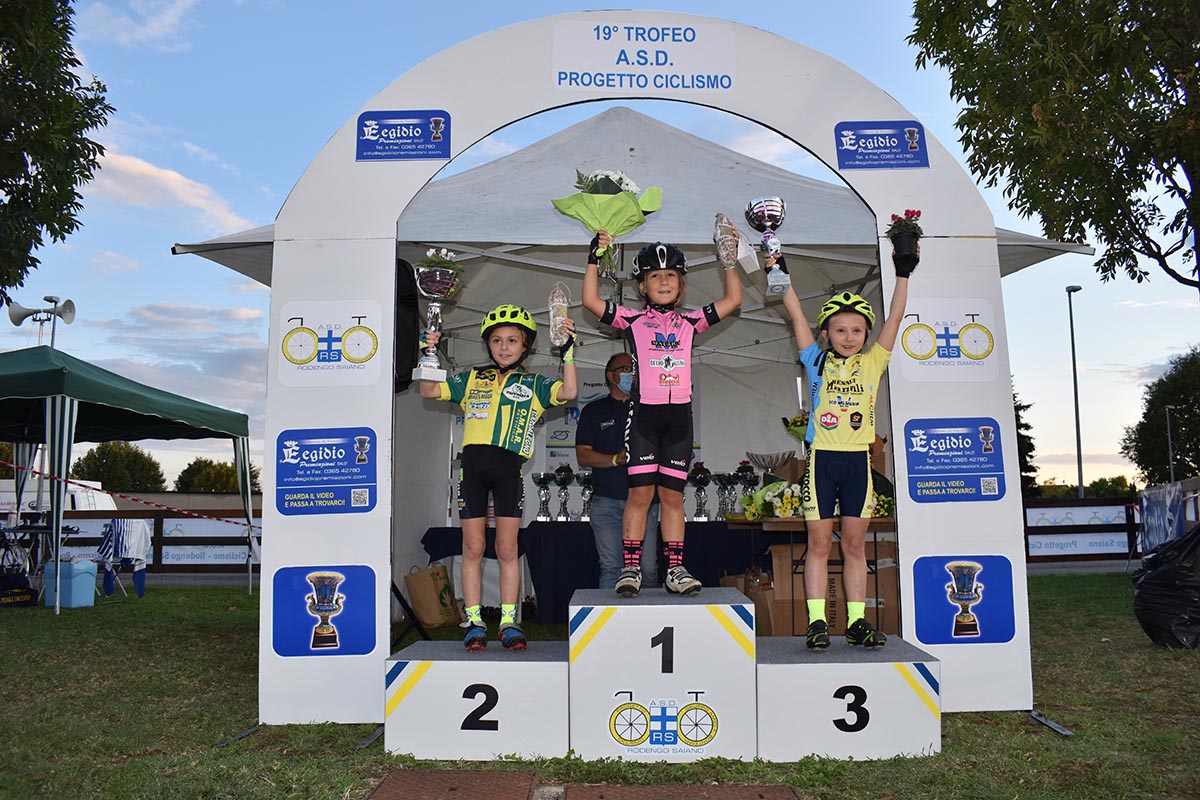 Gs Ronco Maurigi e Mazzano, rispettivamente tra maschi e femmine, si sono aggiudicate le classifiche riservate alle società. Grandi soddisfazione anche per la società di casa, la Progetto Ciclismo – Rodengo Saiano, in particolare nell’ultima batteria dei G6 dove si è assistito ad uno splendido e spettacolare assolo di Riccardo Pasini, che ha rifilato oltre mezzo giro al grosso del gruppo. A completare la festa per la società del presidente Bontempi è arrivato anche il secondo posto di Cristiano Cacciamali.