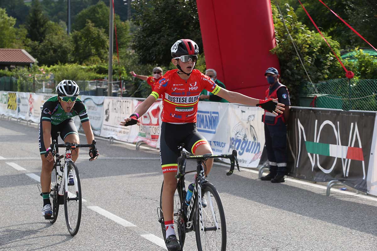 I tre davanti vanno a giocarsi la vittoria allo sprint e la vittoria è netta per Matteo Turconi che si lascia alle spalle Sebastiano Tavelli e Simone Castelli. Ad 1’40” lo sprint del gruppo per la quarta posizione che se l’aggiudica Stefano Gotti del Pedale Brembillese davanti Luigi Schiavolin (Gs Alzate Brianza) quinto e a Luca Morlino (P&G GB Junior Team) sesto.