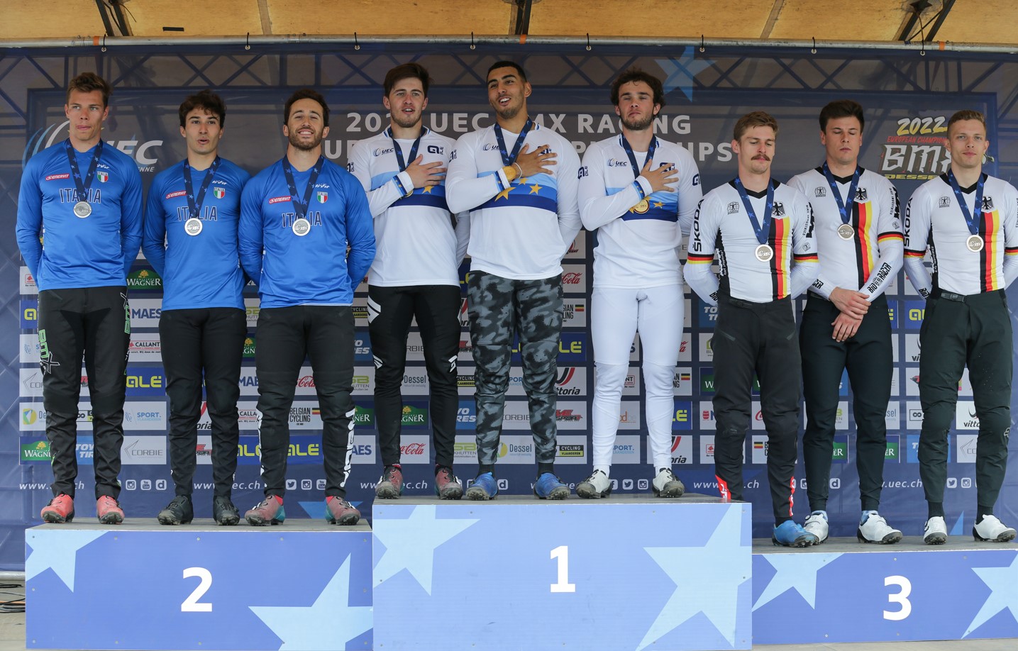 I Campionati Europei di BMX si concludono con il Team Time Trial, titolo di recente istituzione (nel 2021) e con l’Italia che sale ancora sul podio, con una medaglia d’argento che premia tre atleti delusi dalle prove individuali di ieri. Infatti Giacomo Fantoni, Martti Sciortino e Giacomo Gargaglia non avevano fatto mistero, alla vigilia di questo appuntamento continentale, che puntavano decisamente alla finale nelle rispettive categorie. Le cose non sono andate come speravano ed oggi, nel giro di pista, hanno messo tutta la rabbia accumulata. “Abbiamo preparato la gara con molta attenzione – ha ricordato Tommaso Lupi in sede di commento –, i ragazzi sono stati bravi ad interpretare questo esercizio in cui oltre alla forza bisogna essere capaci di coordinarsi in pista con i compagni di squadra.”