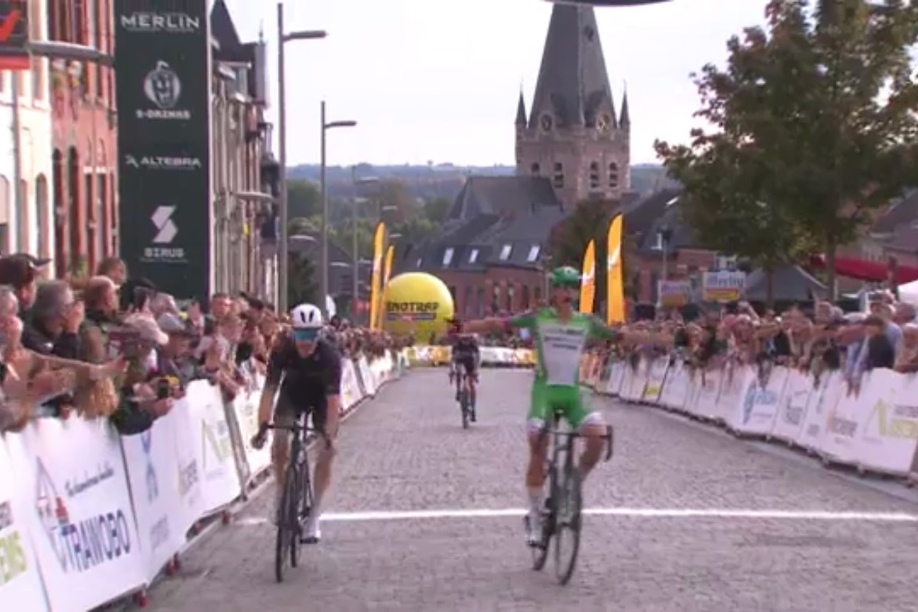 GERAARDSBERGEN (BEL) – Sul traguardo che l’anno scorso vide imporsi Van der Poel, il toscano Filippo Magli coglie la sua prima vittoria tra i professionisti: il neo professionista della Green Project-Bardiani CSF-Faizanè si è infatti imposto a Geraardsbergen, sede di arrivo de La Muur Classic Geraardsbergen. Magli si è inserito nel drappello dei fuggitivi molto nutrito a inizio gara e che ha messo in scacco il gruppo. A giocarsi il successo, dopo una serie infinita di muri che ha scremato il gruppo dei fuggitivi, sono stati il britannico Harry Birchill, l’olandese Peter Schulting e l’atleta del #greenproject, che ha messo la sua ruota davanti a quella dei rivali (nella foto di CSF Faizanè & Sprint Cycling, l’arrivo).