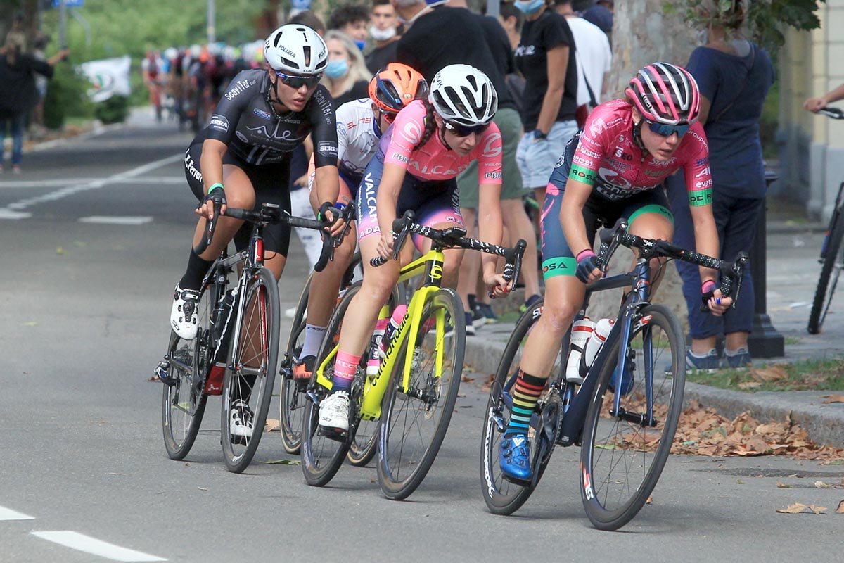 Quindici giri da percorrere del consueto circuito cittadino di 5,7 km con passaggio sotto il traguardo prospiciente al castello duecentesco. Andatura sostenuta sin dai primi giri e selezione “da dietro” provocano la spaccatura del gruppo in tre tronconi. A un terzo di gara attaccano Silvia Zanardi (BePink), Silvia Magri (Valcar) e Giorgia Bariani (Top Girls), cui si accoda poco dopo anche Rachele Barbieri. Le quattro battistrada guadagnano una quindicina di secondi, con il gruppo – ormai molto assottigliato anche a causa di una caduta che ha coinvolto parecchie atlete – che prova a tenere sotto controllo le fuggitive.
