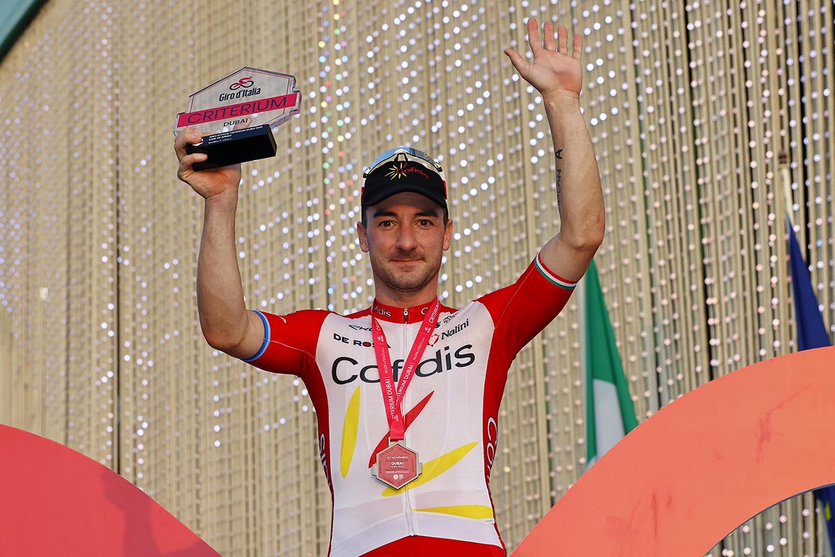 Elia Viviani: “Ho bei ricordi di Dubai – avendo vinto qui il Dubai Tour nel 2018 – e del Giro d’Italia, in particolare della Corsa Rosa 2018 quando ho vinto la Maglia Ciclamino della Classifica a Punti. Come corridore italiano sono orgoglioso di aver partecipato al primo Giro d’Italia Criterium all’Expo 2020 Dubai e di essere stato premiato come vincitore dellaClassifica a punti sul podiodavanti al Padiglione Italia”.
