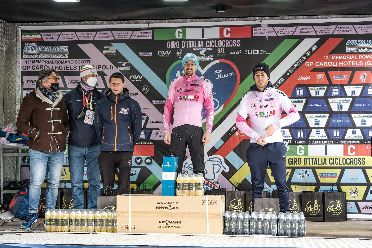 Fa festa la Puglia e fa anche pace con il destino. Il Ciclocross toglie, il ciclocross dà. Lo scorso anno Vittorio Carrer era in maglia rosa allo start di Gallipoli, prima che guai fisici lo allontanassero dalla realizzazione di un sogno. Oggi il fratello Ivan ne ha raccolto il testimone nella categoria Juniores, centrando l’accoppiata tappa e maglia nel culmine di un’ininterrotta fase in crescendo iniziata in sordina ad inizio stagione. Il coratino del team Bike Terenzi ha ottenuto l’en-plein con una gara perfetta, potendo esprimere le sue doti tecniche proprio nell’impegnativo tratto di sabbia: «Son passati ben 4 anni da quando ho indossato per la prima volta la maglia rosa, nell’anno in cui ho vinto il GIC. Oggi torno a indossare questa maglia nella mia terra, con una gara giocata sino all’ultimo, riuscendo alla fine a spuntarla. Sono contento e soddisfatto dopo le sfortune recenti. Un punto di riferimento molto importante è Ferentino, l’obiettivo è mantenere assolutamente questa maglia vista la distanza di pochissimi punti con i compagni-avversari. Grazie team bike Terenzi e famiglia, grazie papà, la mia più grande spalla. Speriamo in meglio per terminare col botto questa stagione».