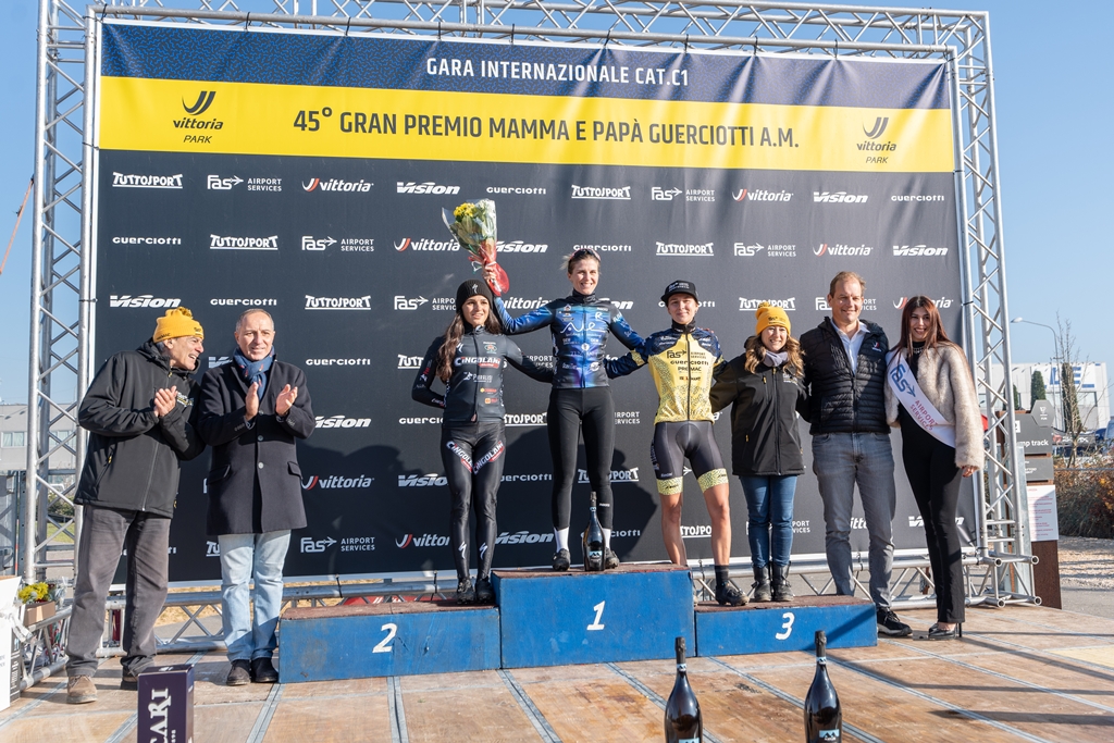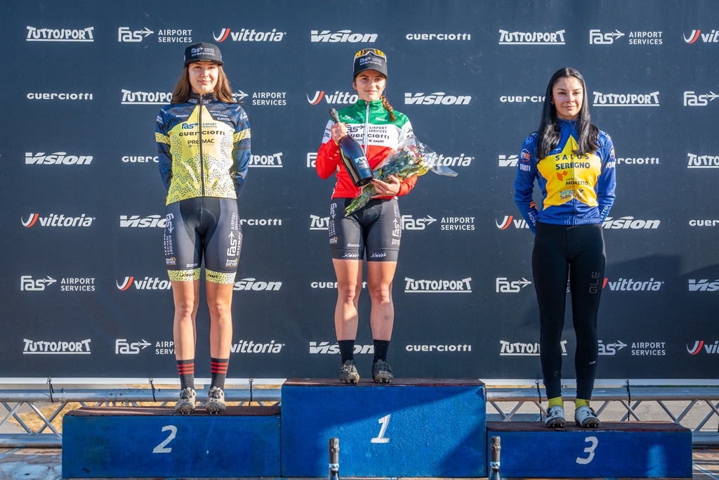 Fin dal primo giro prende il largo la coppia formata dalle due atlete di casa Fas Airport Service Guerciotti Premac, ovvero la tricolore Elisa Ferri ed Elisa Bianchi. Le due proseguono in tandem, poi, nel corso del terzo giro, la campionessa d’Italia Elisa Ferri allunga al comando della competizione e va ad aumentare il proprio vantaggio. Mantiene la seconda posizione la Bianchi, mentre si stabilizza in terza posizione Elisa Giangrasso (Salus Guerciotti CX), alle sua spalle Giulia Zambelli (DP66). Nel corso del quarto e quinto giro aumenta il vantaggio della toscana Bianchi al comando della corsa e si cristallizzano le altre posizioni. Elisa Bianchi taglia tutta sola il traguardo, raccogliendo, dopo il traguardo, l’abbraccio di patron Paolo Guerciotti e del team manager Alessandro Guerciotti.