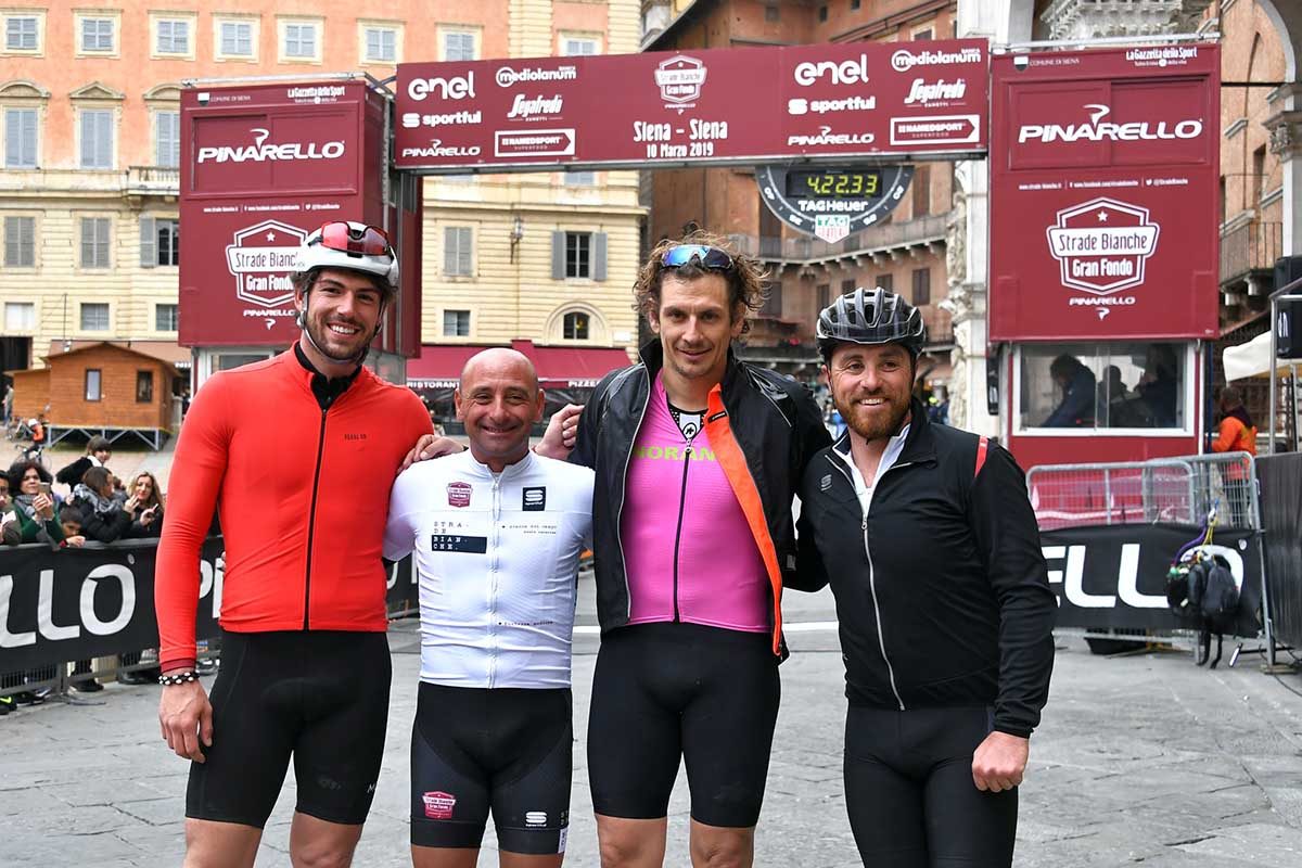 Al via numerosi volti noti: in rappresentanza del Team Sky i corridori Gianni Moscon e Leonardo Basso, il Team Principal Dave Brailsford ed il Direttore Sportivo Dario David Cioni; gli ex corridori Filippo Pozzato, Paolo Bettini, Luca Paolini, Andrea Tafi, Johan Museuuw e Massimiliano Lelli; Ignazio Moser, l’Amministratore Delegato di Pinarello, Fausto Pinarello, il CT della Nazionale Italiana di Ciclismo Davide Cassani, il Direttore di Corsa delle Strade Bianche Stefano Allocchio e l’Amministratore Delegato di RCS Sport Paolo Bellino.