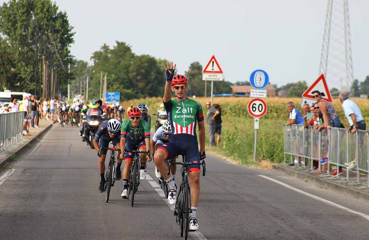 GUAZZORA (AL) – Ancora una vittoria per la Zalf Euromobil Désirée Fior e sigillo di Gregorio Ferri oggi nell’edizione numero 102 del Circuito Guazzorese per Elite e Under 23, corso a Guazzora, in provincia di Alessandro. Il corridore emiliano ha preceduto, al termine di uno sprint ristretto ad un gruppetto di 5 fuggitivi, il compagno di squadra Leonardo Marchiori. Terzo Francecso Baldi della Overall.