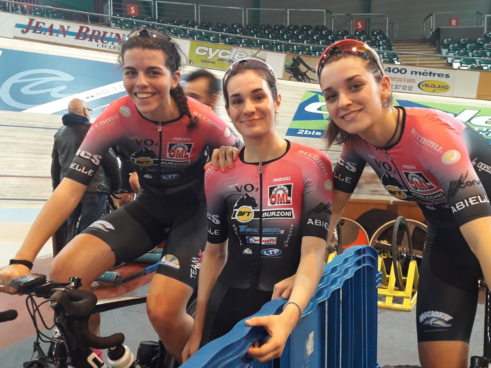 La formula era quella dell’Omnium, riservato alla categoria femminile quindi con formula Open, con la possibilità di confrontarsi anche con atlete più esperte. Alla riga del totale, dopo sette prove spalmate nelle due giornate, è arrivata una splendida doppietta. Sul gradino più alto del podio è salita la torinese Eleonora Camilla Gasparrini, campionessa europea di categoria nella specialità, mentre al secondo posto si è classificata la compagna di squadra milanese Aurora Mantovani. Terza un’altra italiana, l’elite Francesca Selva (T° Red Factory Racing). Ai piedi del podio, tris di piazzamenti per il VO2 Team Pink: quarta la piemontese Francesca Barale, al primo anno nel sodalizio piacentino e in categoria, sesta la bresciana Silvia Bortolotti (“panterina” fresca di passaggio di categoria) e settima la parmense Giulia Affaticati.