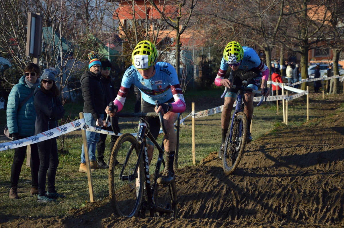 La DP66 Giant SMP si è potuta rifare nella categoria juniores, con la ormai consueta doppietta di Tommaso Cafueri e Stefano Viezzi, che hanno anticipato Leonardo Ursella (Jam’s Bike Team Buja). I due compagni di squadra hanno fatto gara a sé, non risparmiandosi affondi e allunghi. Una sfida vera che probabilmente si riproporrà il 28 dicembre a San Francesco al Campo (in provincia di Torino), sede dell’ultimo atto del circuito Master Cross Selle SMP: in lizza per il successo ci sono proprio Cafueri, Viezzi ed Ettore Prà, fresco vincitore del Giro d’Italia Ciclocross.