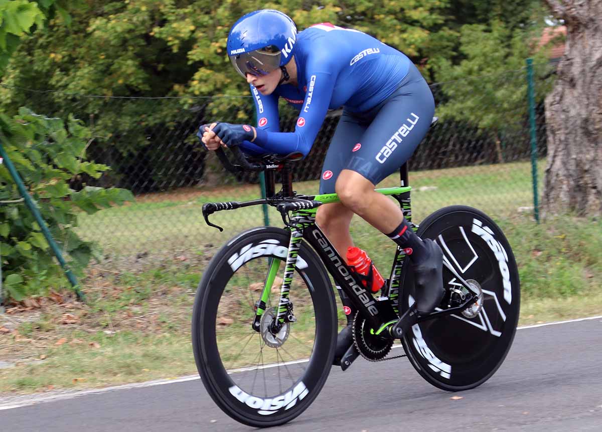 Vittoria Bussi in azione al Mondiale a cronometro Donne Elite a Imola 2020 (foto Photobicicailotto)