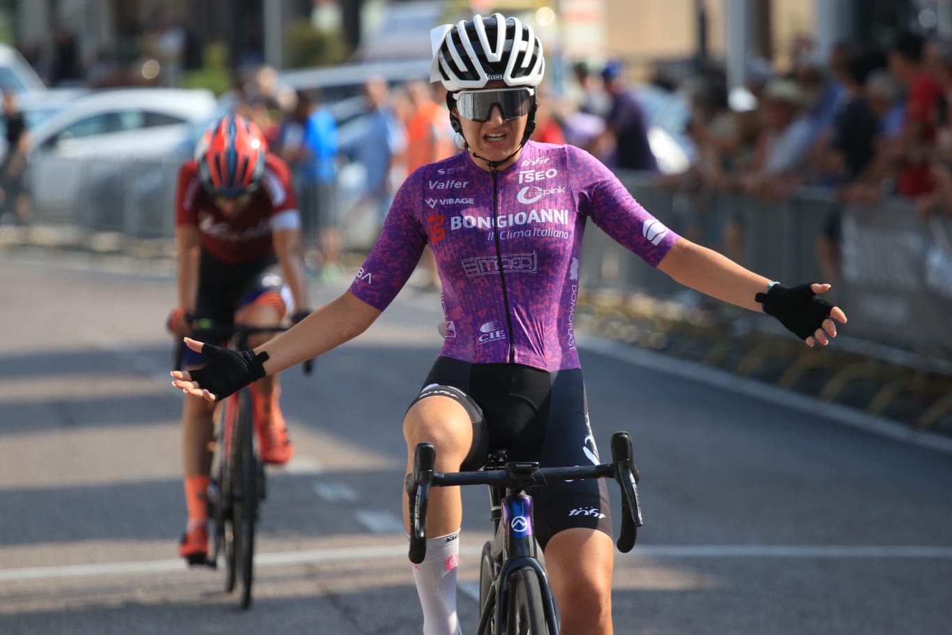 Ma, a differenza di quanto successo dodici mesi fa, sono state tante le atlete che si sono giocate il successo. Sul rettilineo d’arrivo è infatti piombato un drappello di otto atlete, racchiuse al traguardo in soli 7″. Ai piedi del podio hanno chiuso la friulana Asia Zontone (Isolmant-Premac-Vittoria) e l’abruzzese Giulia Giuliani (K2 Women Team), già protagoniste 24 ore prima al Gran Premio Sportivi di Arcade. Sesta piazza assoluta per la maglia tricolore di Giada Silo (Breganze Millenium), che si è così imposta nella categoria delle Donne U19. Settima piazza per la bergamasca Sofia Arici, al primo piazzamento da quando corre su strada, e ottava posizione per la sua conterranea Silvia Milesi (Biesse Carrera), seconda delle juniores.