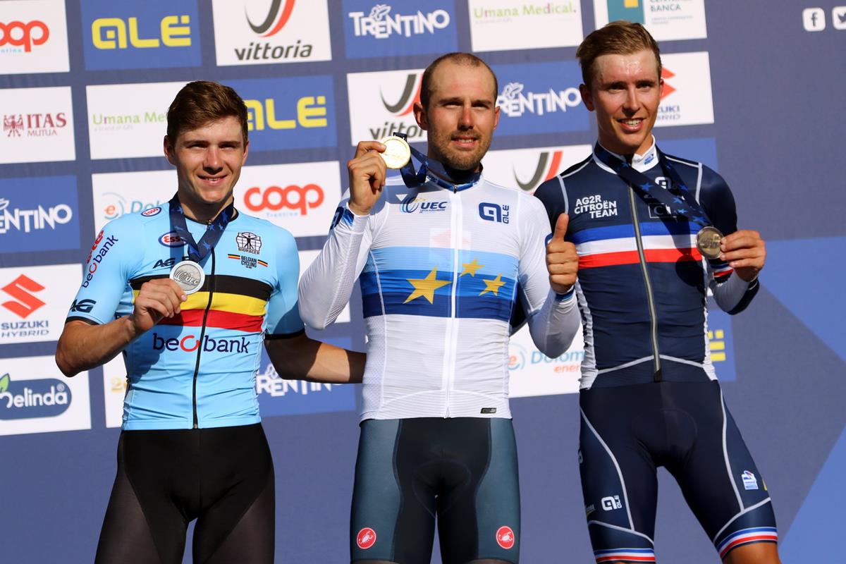 Il campione Europeo: “Sono contento. Non era facile, soprattutto perché partivo come favorito e correvamo in casa, quindi la pressione era doppia. Io e i miei compagni stavamo molto bene e volevo finalizzare il lavoro di tutti. Quando è scattato Remco ci ha spezzato… Sull’ultima salita ero al limite, ma ho resistito…”