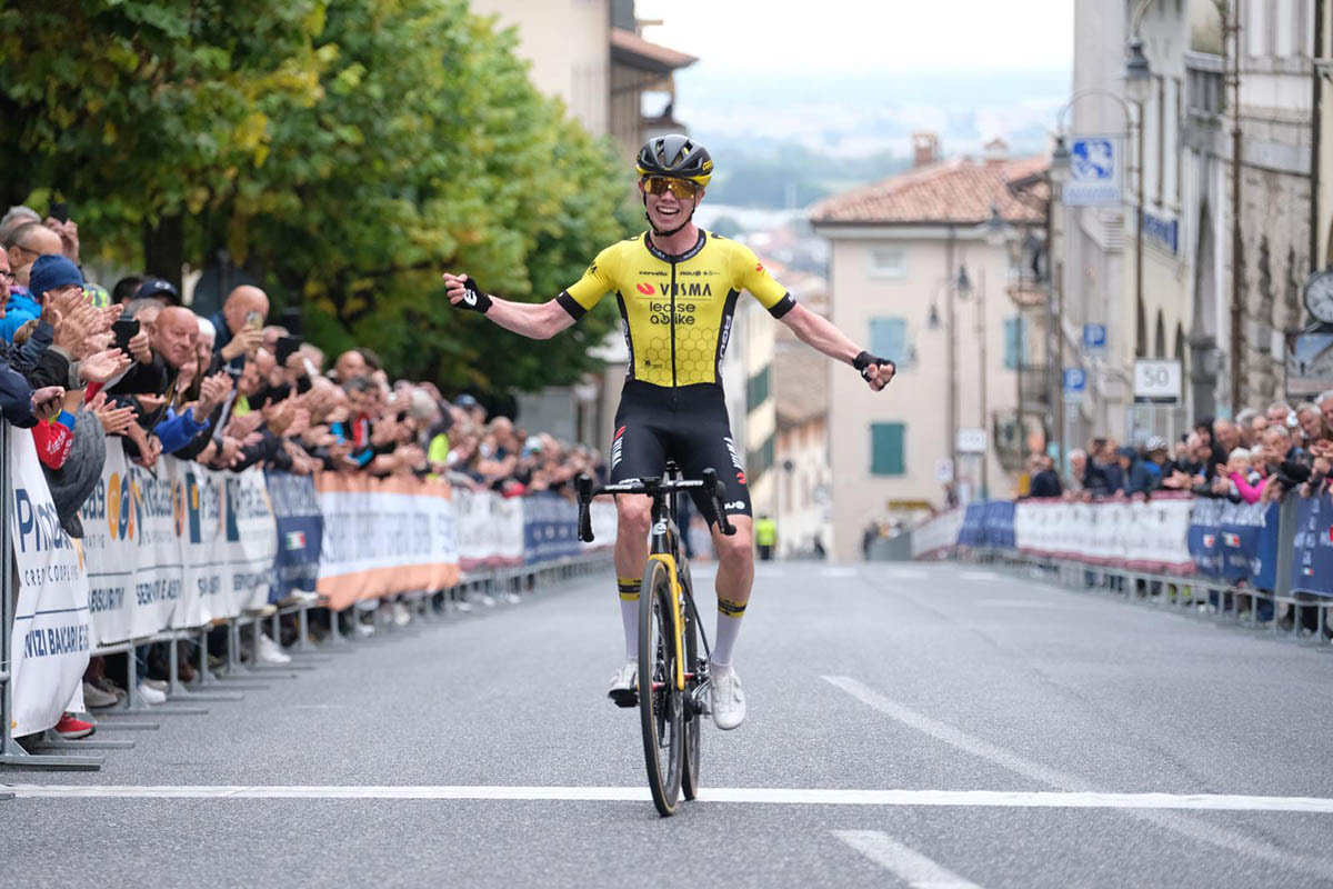 SAN DANIELE DEL FRIULI – Si conferma il feeling tra le strade friulane e Jorgen Nordhagen: il norvegese del Visma Lease a Bike Development Team, dopo aver conquistato una tappa e la classifica generale del Giro della Regione Friuli Venezia Giulia, mette in bacheca anche l’87^ Coppa Città di San Daniele (nello scatto di Photors.it, l’arrivo).