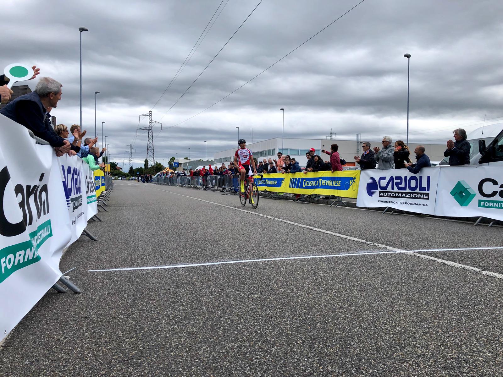 TREVIGLIO (BG) – Al termine di una vera e propria impresa e di una giornata da ricordare per Riccardo Tomasoni della Madignanese Ciclismo ha festeggiato la seconda affermazione stagionale sul traguardo di Treviglio, dove oggi si è corso il 1° Trofeo Utensileria F.lli Carioli in ricordo di Enrico.