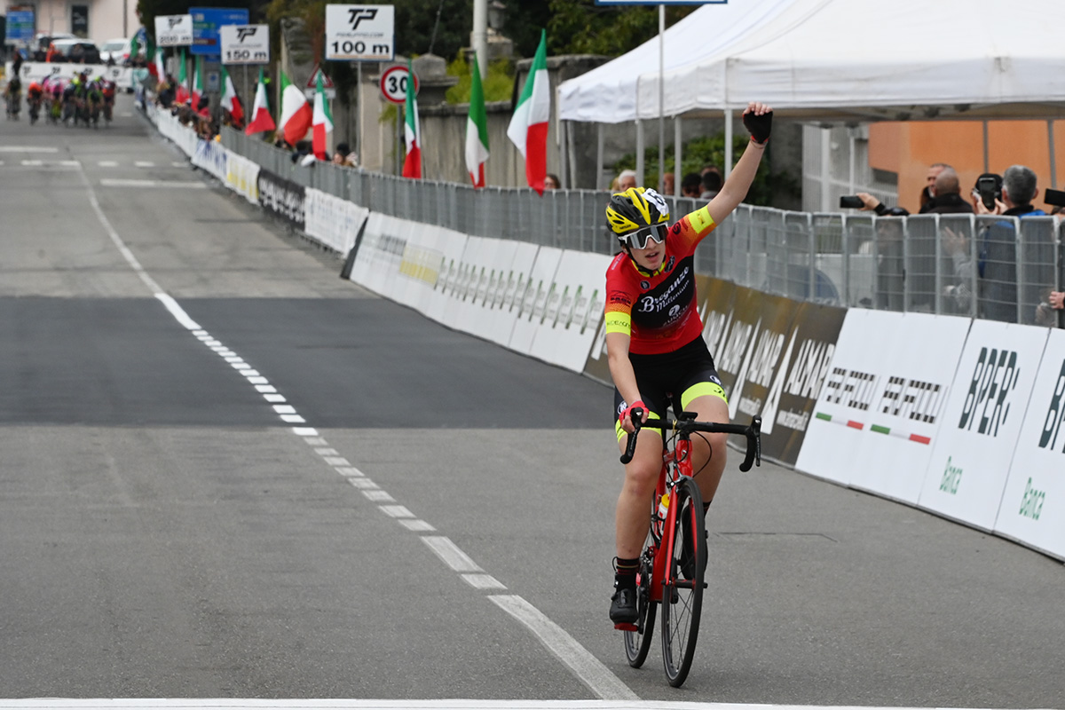CITTIGLIO (VA) – Ci ha impiegato poco la veneta Linda Rapporti a prendere le misure con la nuova categoria delle Donne Allieve. La portacolori del Team Breganze Millenium ha infatti vinto la prima edizione del Trofeo Binda giovanile grazie a un attacco all’inizio del quarto e ultimo giro. La 15enne (nella foto di Diego Zanetti), ha risposto a un allungo di una coetanea, per poi proseguire in solitaria tagliando il traguardo con 17 secondi di vantaggio sul gruppo delle immediate inseguitrici, regolato da Serena Zannoni (altra interessante primo anno) e Camilla Bezzone.
