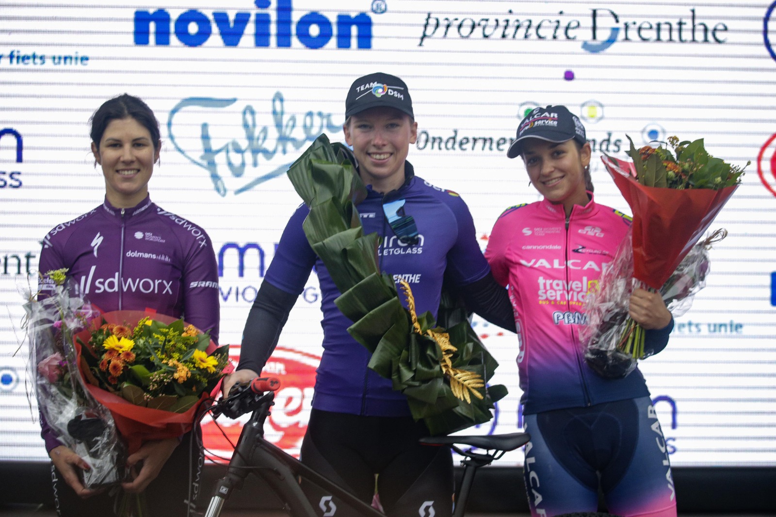 Il podio della UCI Women’s WorldTour Ronde van Drenthe 2021 (foto Anton Vos)
