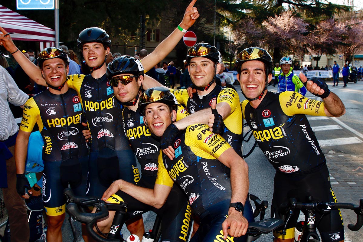 A due giri dalla conclusione si forma un terzetto al comando della corsa. Sono proprio Cretti, Hennebger ed Aquila che vanno a contendersi la vittoria allo sprint. Bel testa a testa tra il bergamasco ed il danese con Cretti che riesce a spuntarla. Seconda vittoria in due giorni per la Hopplà – Petroli Firenze – Don Camillo che già ieri aveva esultato con Nencini a Ceresara.