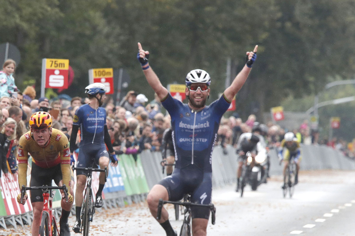MUNSTER (GERMANIA) – Mark Cavendish ha ottenuto la sua decima vittoria di questa stagione al termine di una fantastica giornata. La 15esima edizione dello Sparkassen Münsterland Giro di 188 km è stata dominata dalla Deceuninck – Quick-Step che, a circa 100 km dall’arrivo, ha preso subito in mano la situazione e sfoltito il gruppo con una serie di attacchi, sfruttando anche il vento laterale.