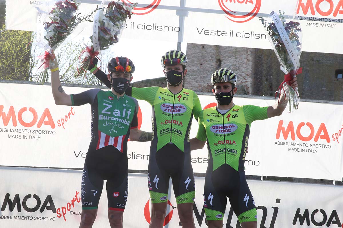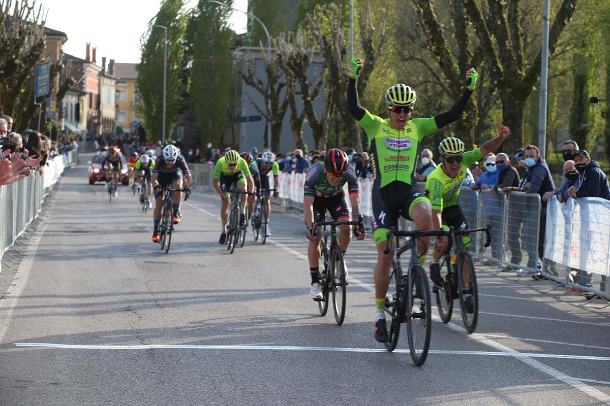 A una cinquantina di chilometri dall’arrivo nasce l’azione decisiva: evadono proprio Riccardo Lucca e Riccardo Verza della Zalf-Fior, danno vigore alla loro azione, guadagnano fino a 1’30”, ma poi nel finale vedono avvicinarsi sempre di più gli inseguitori. Solo Lucca è riuscito a resistere e a vincere. Verza ha dovuto accontentarsi del terzo posto perché si è inserito Rocchetta, compagno del vincitore, che di fatto ha vinto la volata del gruppo e anche quella contro Verza che, comunque, si è preso un meritatissimo podio.
