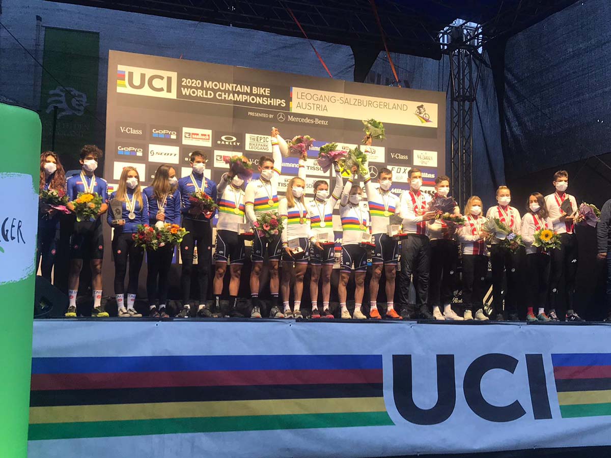 LEOGAN (AUSTRIA) – Parte col botto la trasferta in Austria dellaNazionale MTB di Mirko Celestino, che questa mattina nella prova d’esordio va già a medaglia: è argento nel Team Relay per gli azzurri Luca Braidot, Eva Lechner, Filippo Agostinacchio, Nicole Pesse, Marika Tovo e Juri Zanotti, autori di un’ottima prestazione condita da una bellissima azione in rimonta di gruppo. A festeggiare è la Francia, che esulta con l’ultimo staffettista Jordan Sarrou; terza piazza invece per la Svizzera, che chiude con 31” di distacco dagli azzurri.