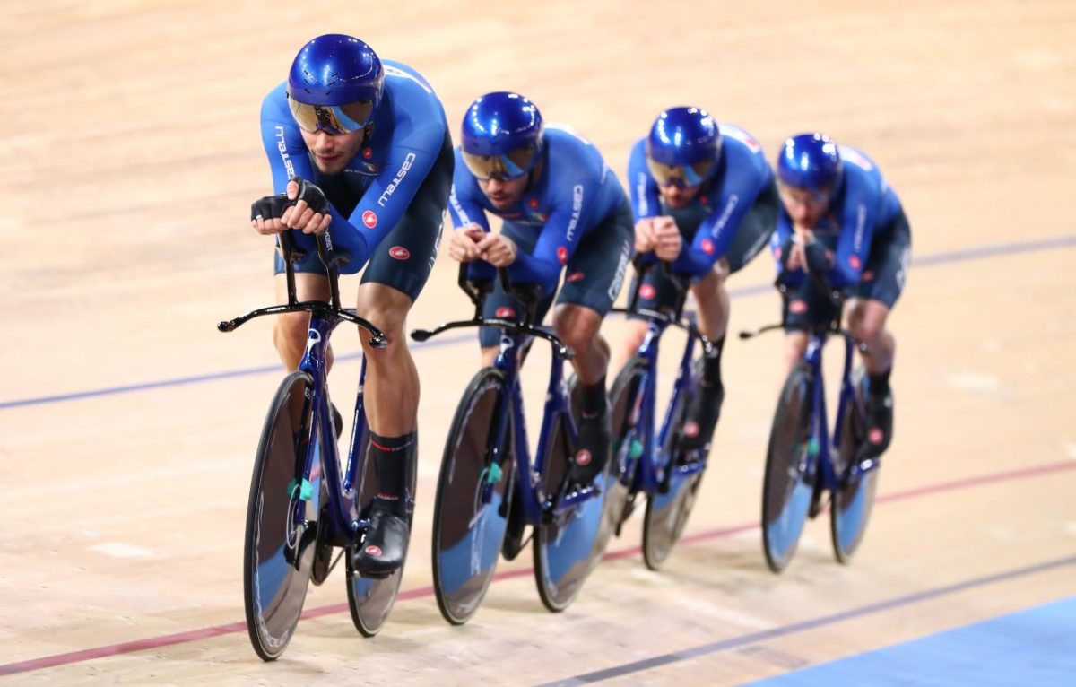 BERLINO (GERMANIA) – La seconda giornata di gare dei Mondiali pista porta all’Italia le pirme due medaglie della rassegna iridata di Berlino: bronzo per il quartetto azzurro composto da Simone Consonni, Filippo Ganna, Francesco Lamon e il giovane Jonathan Milan autore ieri del nuovo record italiano di 3’46”513, seconda prestazione mondiale di sempre e un inaspettato argento nello scratch con Simone Consonni. La giornata era iniziata bene anche grazie al record italiano registrato dalla giovane Miriam Vece nei 200 metri lanciati.