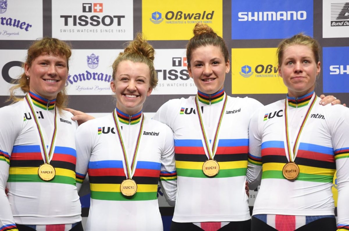 Il titolo iridato è stato vinto dalla Danimarca che ha registrato un altro record del mondo nella finalissima abbassando per la terza volta in questo mondiale il limite, in questa occasione di quasi due secondi: 3’44”672. Protagonisti Lasse Norman Hansen, Julius Johansen, Frederik Madsen e Rasmus Pedersen. Argento alla Nuova Zelanda con solo 3’49″713.