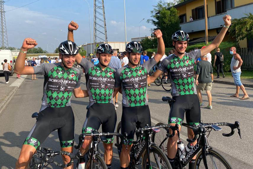 A Treviglio (Bg) su un percorso molto veloce la sfida è scivolata via a quasi 48 chilometri orari di media con il quartetto della Borgo Molino Rinascita Ormelle che ha monopolizzato il gran finale lanciando uno sprint perfetto a Manlio Moro e Alessio Portello a cui si è aggiunto il settimo posto di Lorenzo Ursella.