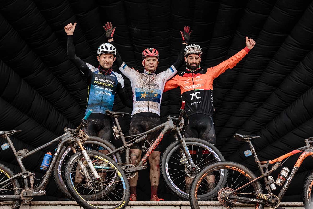 GARDA (VR) – La pioggia battente e anche la neve che ha costretto a tagliare un pezzo di percorso, dove era previsto un passaggio sulla parte più alta del monte Baldo, hanno caratterizzato una difficile edizione 2019 della MTB Garda Marathon. Percorso accorciato a 42 km e vittoria allo sprint del solito russo Alexey Medvedev (Cicli Taddei) che ha avuto la meglio del colombiano Leo Paez (Giant-Liv Polimedical). Terzo l’orobico Johnny Cattaneo (Wilier Force). Per il russo è la quinta vittoria in questa corsa.
