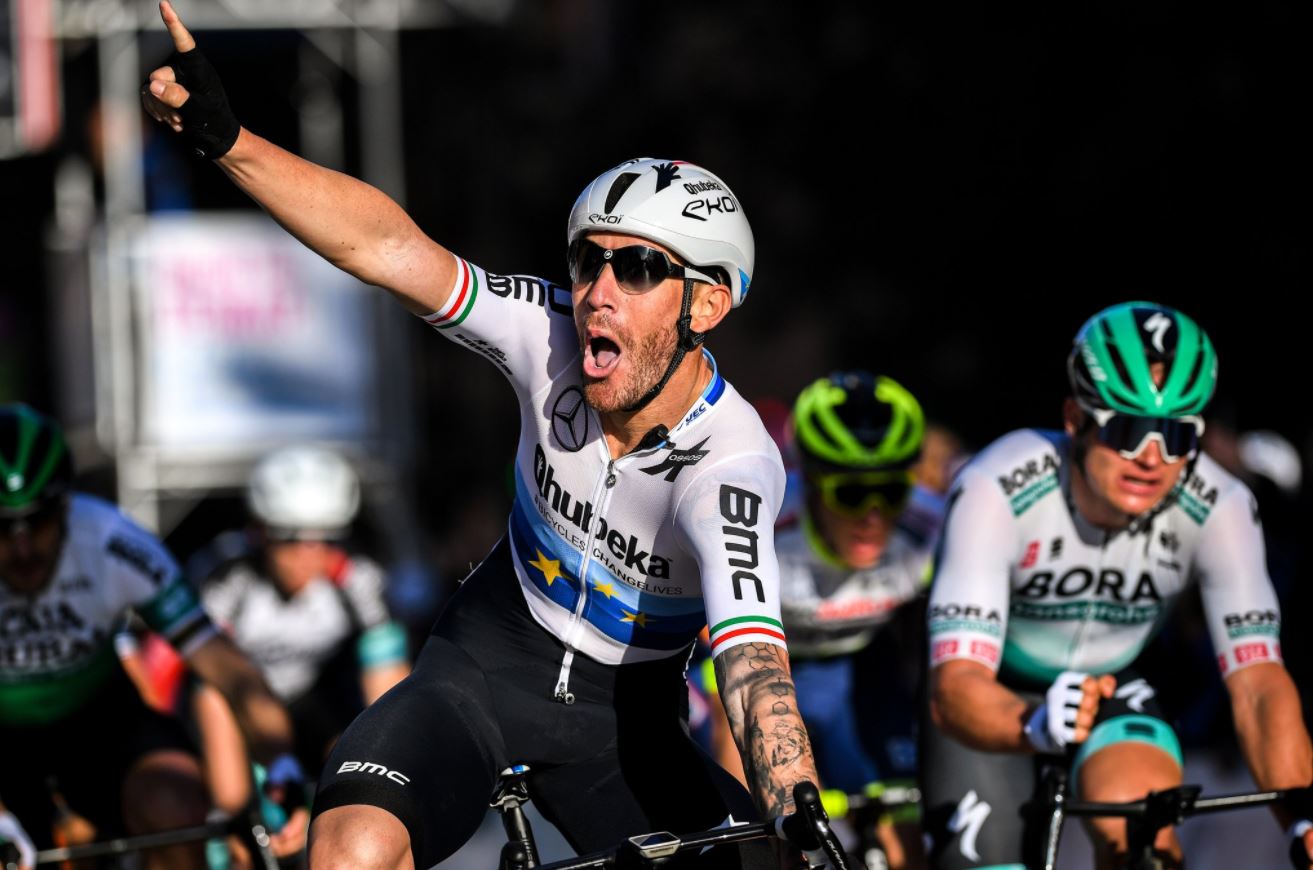 Splendida accelerazione del campione europeo ed italiano su strada che è riuscito a superare Florian Sénéchal della Deceuninck-Quick-Step in maniera nettissima. Terzo Martin Laas della Bora-Hansgrohe.