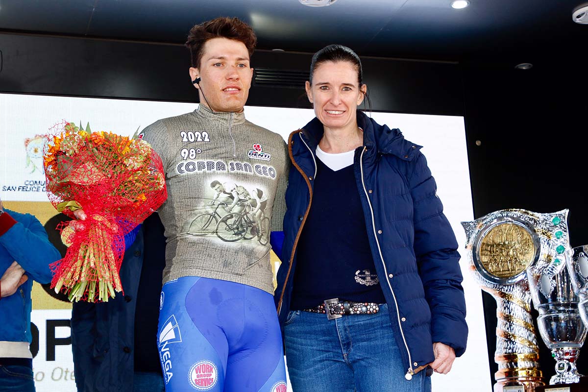 Samuele Zambelli vincitore della Coppa San Geo 2022 premiato da Norma Gimondi (foto Photobicicailotto)