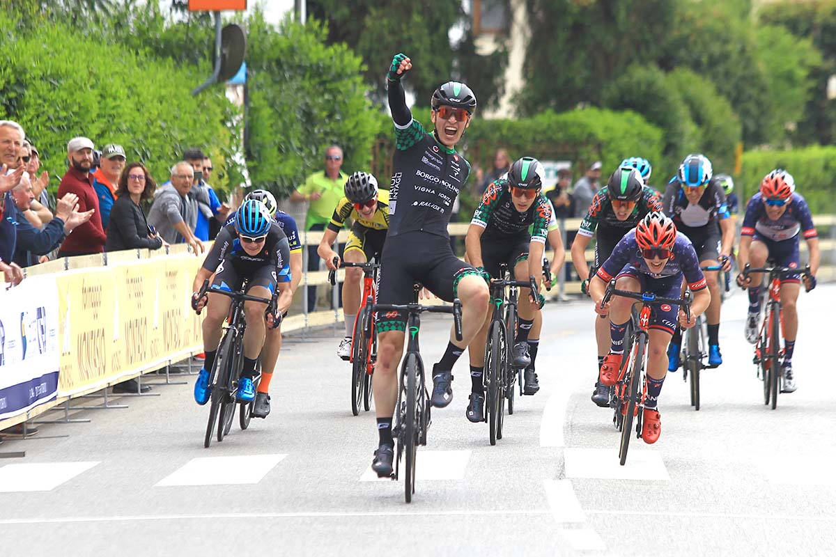Nonostante questa girandola di allunghi il drappello si è presentato compatto sul rettifilo d’arrivo dove Matteo De Monte, ottimamente pilotato dai compagni di squadra, ha potuto far prevalere la propria progressione di potenza tagliando nettamente al comando la linea del traguardo. A completare la festa targata Borgo Molino Vigna Fiorita anche il quarto posto di Vladimir Milosevic ed il quinto di Nicolò Birello.