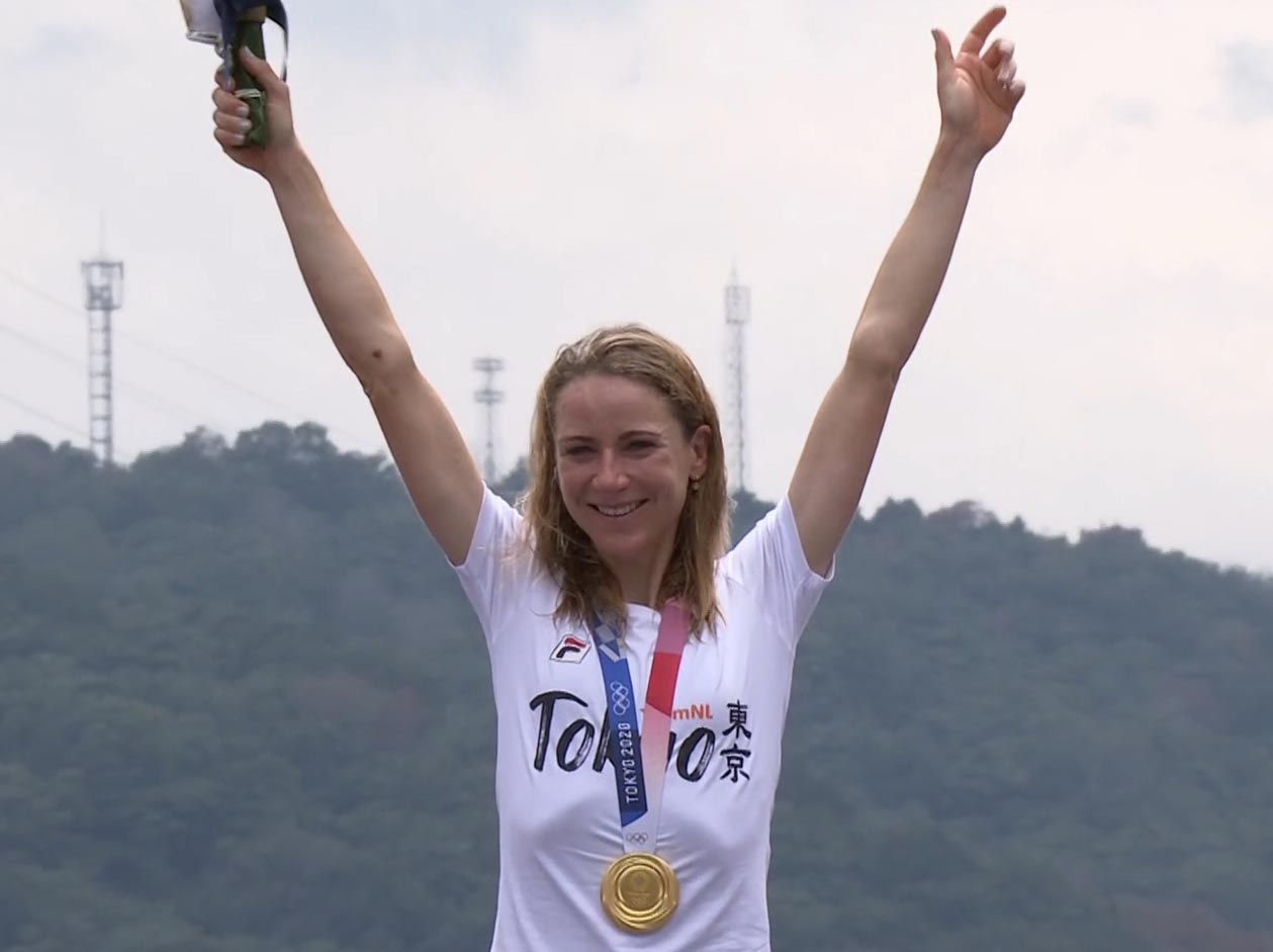 TOKYO (GIAPPONE) – Annemiek Van Vleuten (Olanda) questa volta può sorridere e gioire. Dopo l‘errore di valutazione e la medaglia d’argento nella prova in linea, oggi è andata a prendersi la medaglia più preziosa nella prova a cronometro dei Giochi Olimpici di Tokyo 2020. L’olandese è finalmente campionessa olimpica, a 38 anni è il coronamento di una carriera stratosferica che l’ha vista vincere, tra le altre, du titoli mondiali a cronometro, un Europeo ed un Mondiale su strada.