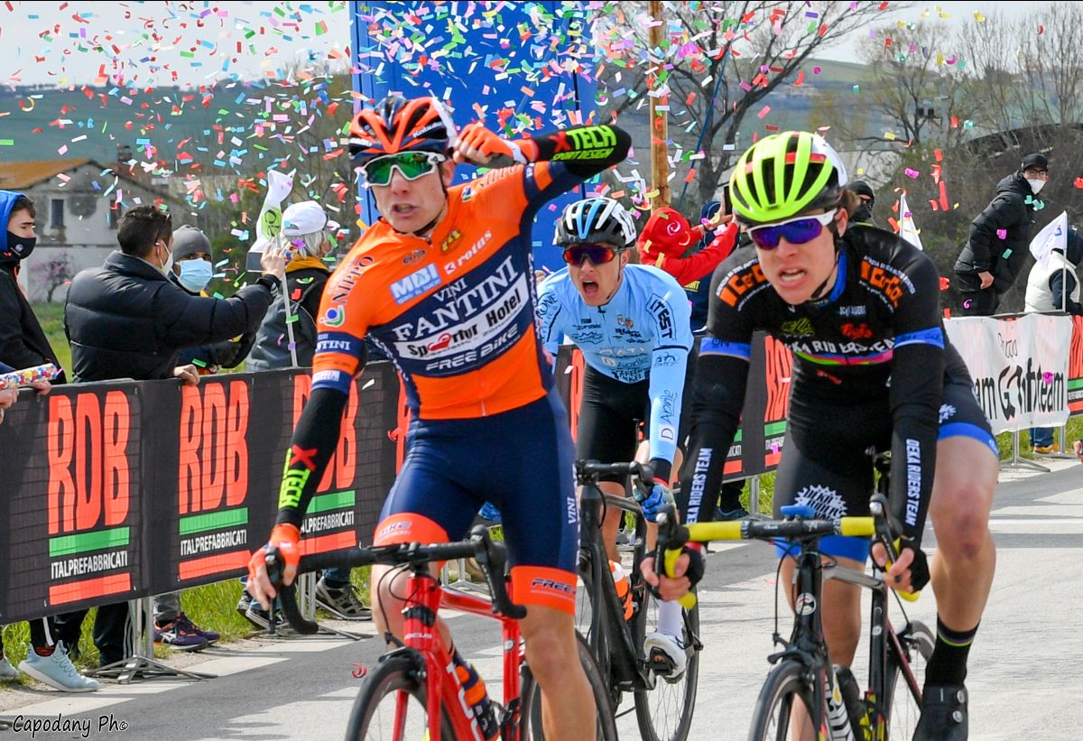 Aielli, classe 2003, allo sprint ha regolato Karim Venturi della Deka Riders Tea Bike Romagna e il pugliese Vittorio Carrer del team Bike Terenze. Quarto il milanese Dario Igor Belletta, al debutto con la maglia della GB Junior Team.