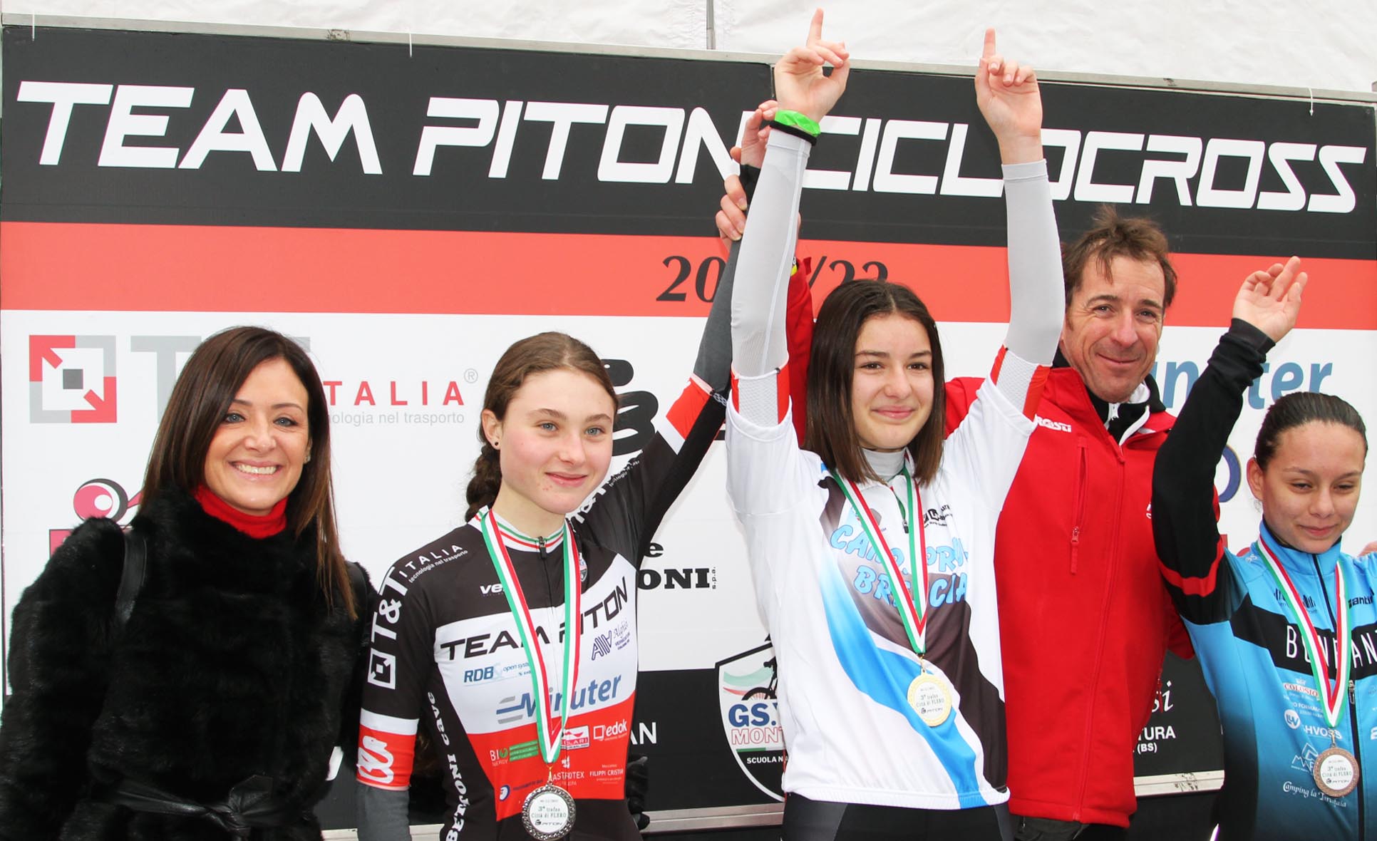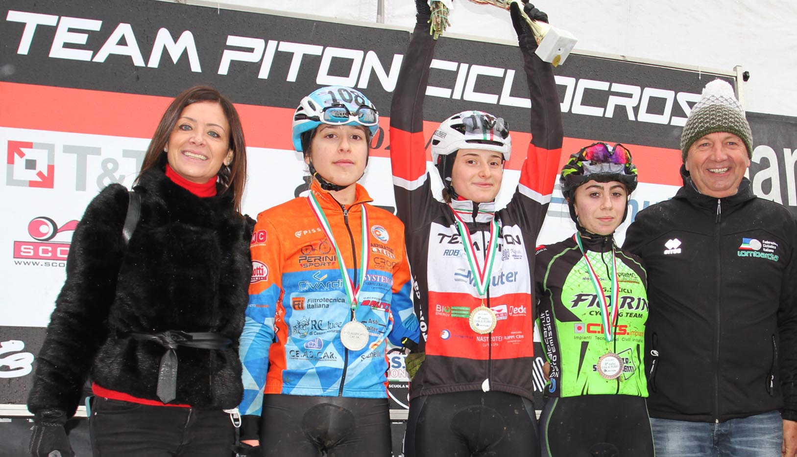 DONNE JUNIORES. 1. Anita Poletti (Team Ciclocross PCR Tainenberg); 2. Irene Oneda (GS Cicli Fiorin); 3. Greta Levardi (Maserati Cadeo); 4. Vanessa Benuzzi (Maserati Cadeo); 5. Nicole Comincini (Gruppo Nulli Guber Banca).