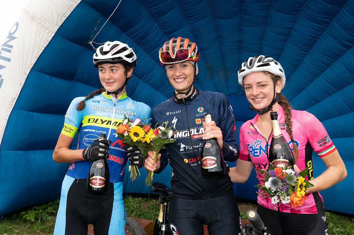 Gara femminile dominata da Debora Piana che vince in 2:01:32 davanti a Vittoria Pietrovito (02:05:24) e Claudia Peretti (02:07:23) che si aggiudica la maglia “rosa” del Trentino MTB Tour 2021.