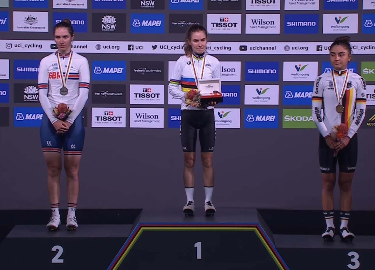 Il podio del Mondiale Donne U23 Wollongong 2022 vinta da Niamh Fisher-Blanck