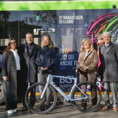 Un autobus ATB personalizzato per promuovere la BGY Airport Granfondo 2026