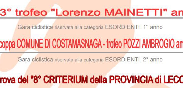 Domenica 17 aprile l'Uc Costamasnaga organizza il doppio appuntamento riservato alle categorie Esordienti 1° e 2° anno, validi come seconda prova dell'8° Criterium della Provincia di Lecco.