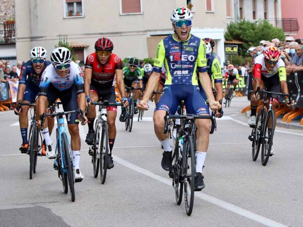 Con un colpo di reni, il bergamasco della Colpack Ballan vince il Costa dei Trulli davanti all'azzurro Andrea Raccagni Noviero e Kyrylo Tsarenko.