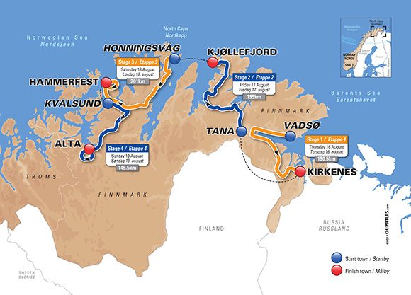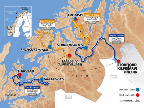 La sesta edizione dell'Arctic Race of Norway è in programma in Norvegia dal 16 al 19 agosto 2018. Svelati oggi i percorsi della quattro tappe.