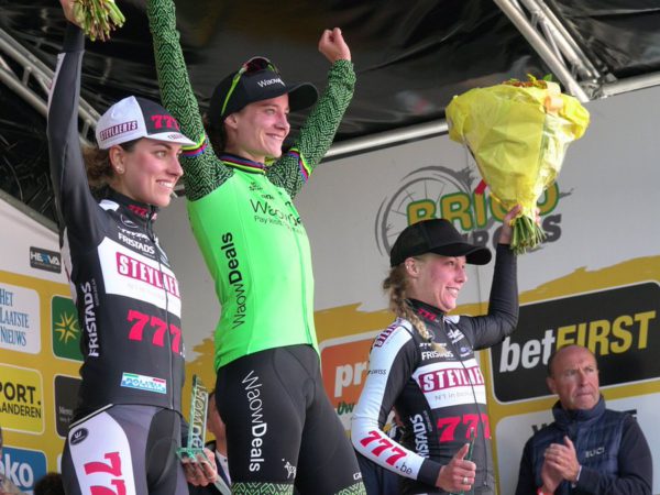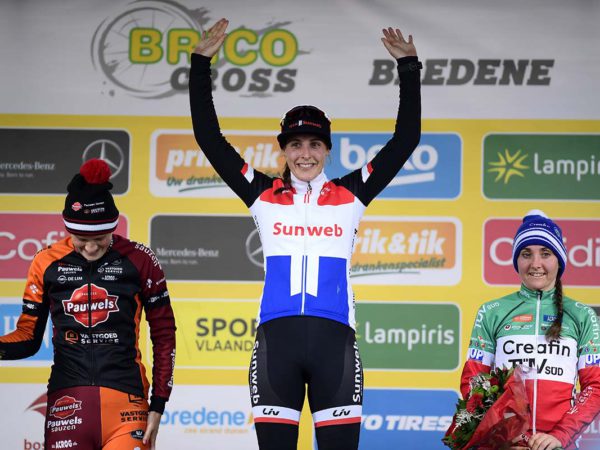 Dopo una lunga serie di piazzamenti e podi, finalmente, la brianzola Alice Maria Arzuffi ha potuto festeggiare la sua prima vittoria nella stagione ciclocross imponendosi nel Brico Cross di Bredene, in Belgio.