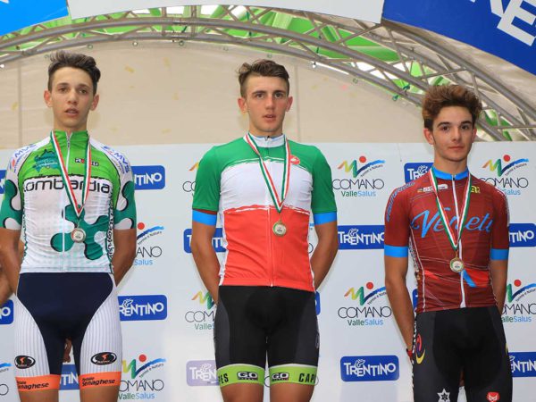 Il veneto Giovanni Vito (Cage-Capes) che è riuscito ad avere la meglio in volata del lombardo Andrea Piccolo (Pedale Senaghese) ed è campione italiano Allievi 2017.
