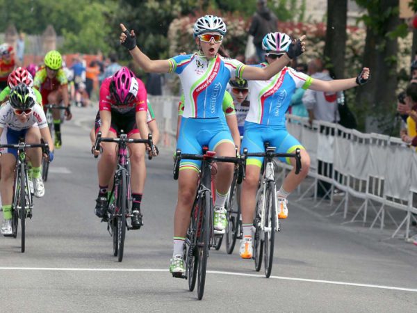 Camilla Barbero (Rodman) si aggiudica il Trofeo Bussolati Asfalti tra le Donne Allieve regolando nello sprint a due la compagna di fuga Giulia Affaticati.