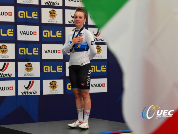 La trentina Letizia Paternoster arricchisce di un'altra medaglia il suo palmares vincendo il Campionato Europeo dell'Omnium Donne Under 23 ad Aigle.
