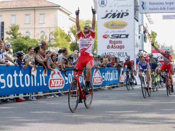 Simone Velasco primo a Forlì, sua la terza tappa della Settimana Coppi e Bartali